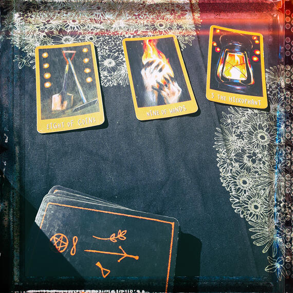 Hi, my name is Crash, my pronouns are they/them, and I've been reading Tarot casually since 2013 and more seriously since 2016. I've been interested in witchy things since I was a young teenager, but didn't get a chance to practice until I was in my early twenties. Since picking up an eclectic, agnostic, and largely secular craft, some of my favorite things have been cartomancy (divination by cards), knot magic, and protection tokens—charms, talismans, and amulets.Since acquiring the first deck I could read without a guide open in 2016 (The Raven's Prophecy by Maggie Steifvater), I've accumulated a small collection of Tarot decks as gifts, trades, and hand-me-downs. I've also found that I enjoy reading, and that I'm good at it. It's something that I really resonate with. Unlike modern capitalism, neurotypical society, and the overhead light.My readings have been described as "scary accurate," "intense," and "idiomatic." I think of myself as unconventional, and maybe a tiny bit irreverent. I still have the Raven's deck and it still smells like some kind of fruity beer someone spilled on it during a wilderness trip in 2019.Right now my favorite deck to read with is Welcome to Night Vale's Hayworth Tarot, my favorite incense smell is sandalwood, and my favorite material to use in witchcraft right now is spell and intention oils.When I'm not reading cards, I'm spending time with my family, listening to too many podcasts with interrelated hosts, or petting the many dogs in my house or cats in my heart,
