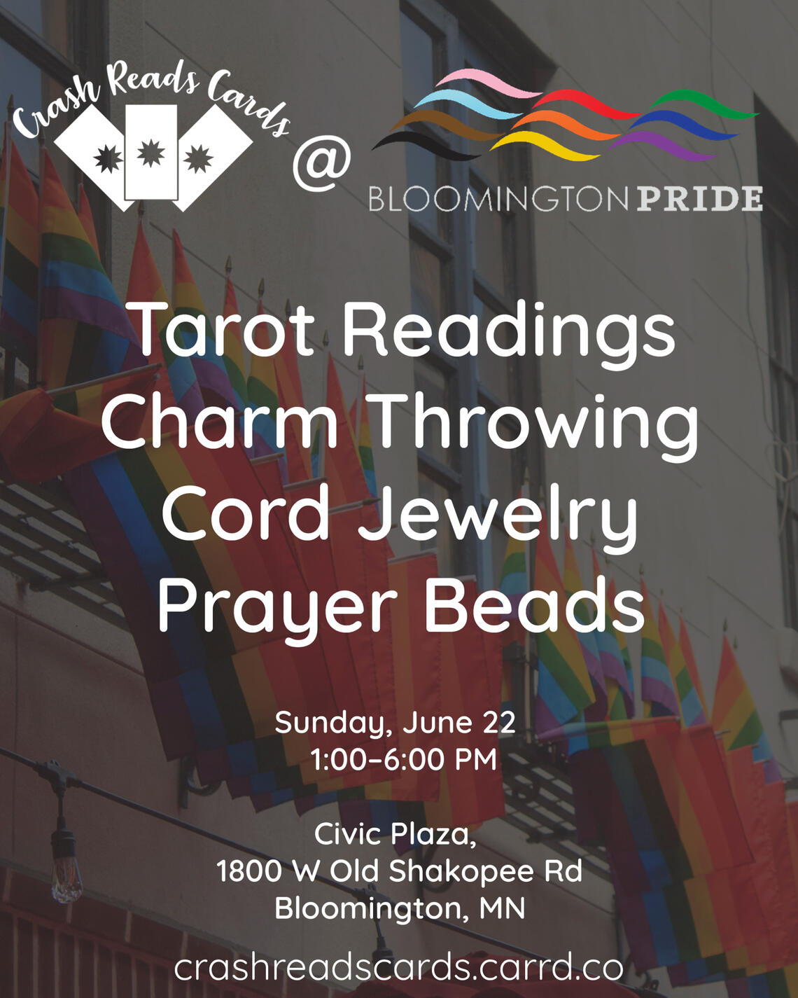 My next in-person event is Sunday, June 22, 1pm to 5pm at Bloomington Pride!Bloomington Civic Plaza
